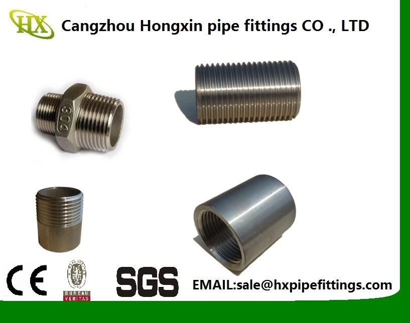 จัดหา 304 316 316Lสแตนเลสสตีลข้อต่อท่อ หัวนมแบบบาร์เรล/หัวนมเกลียวคู่,